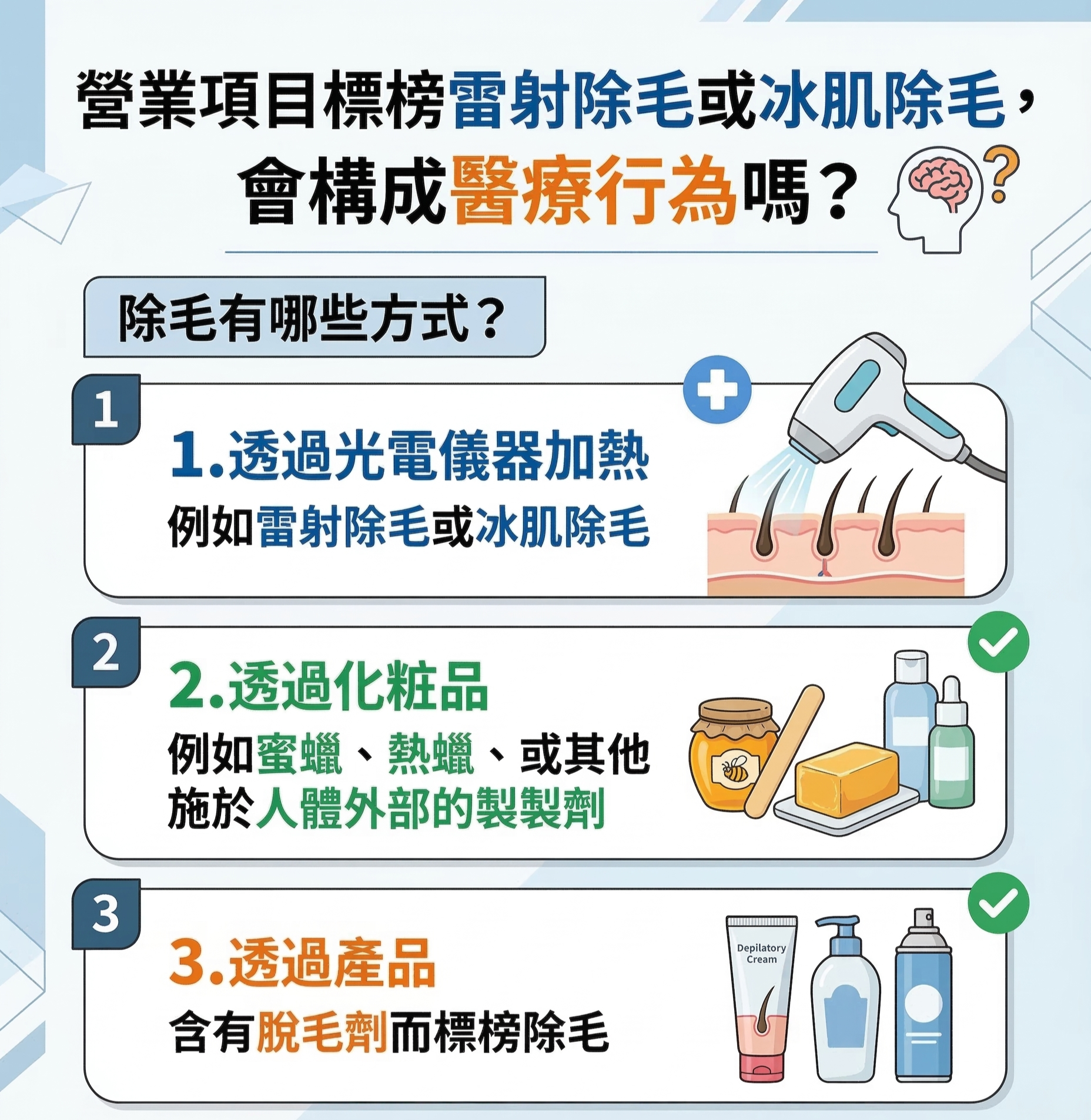 【營業項目標榜「雷射除毛」或「冰肌除毛」,會構成醫療行為?】
