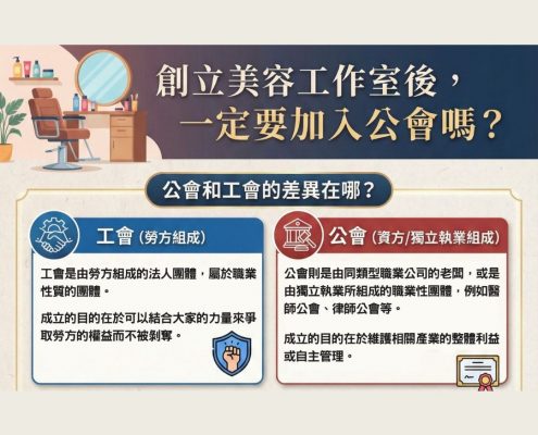 成立一間美容工作室到底需不需要加入公會,應該是剛創業很多人都會有的疑問,一定要加入公會嗎?如果不加入公會會怎樣嗎?要加入幾個工會呢?只要加入一個,還是所有有收到公會的邀請信都要加入呢?
