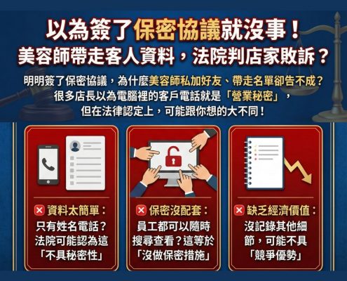 有一位美容師在某家美容美體店家做了兩年多之後離職,卻被前雇主告上法院,說他竊取顧客資料,違反當初所簽的保密協議,所以求償200萬元違約金。
